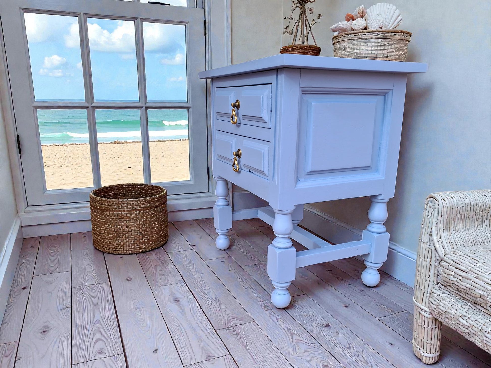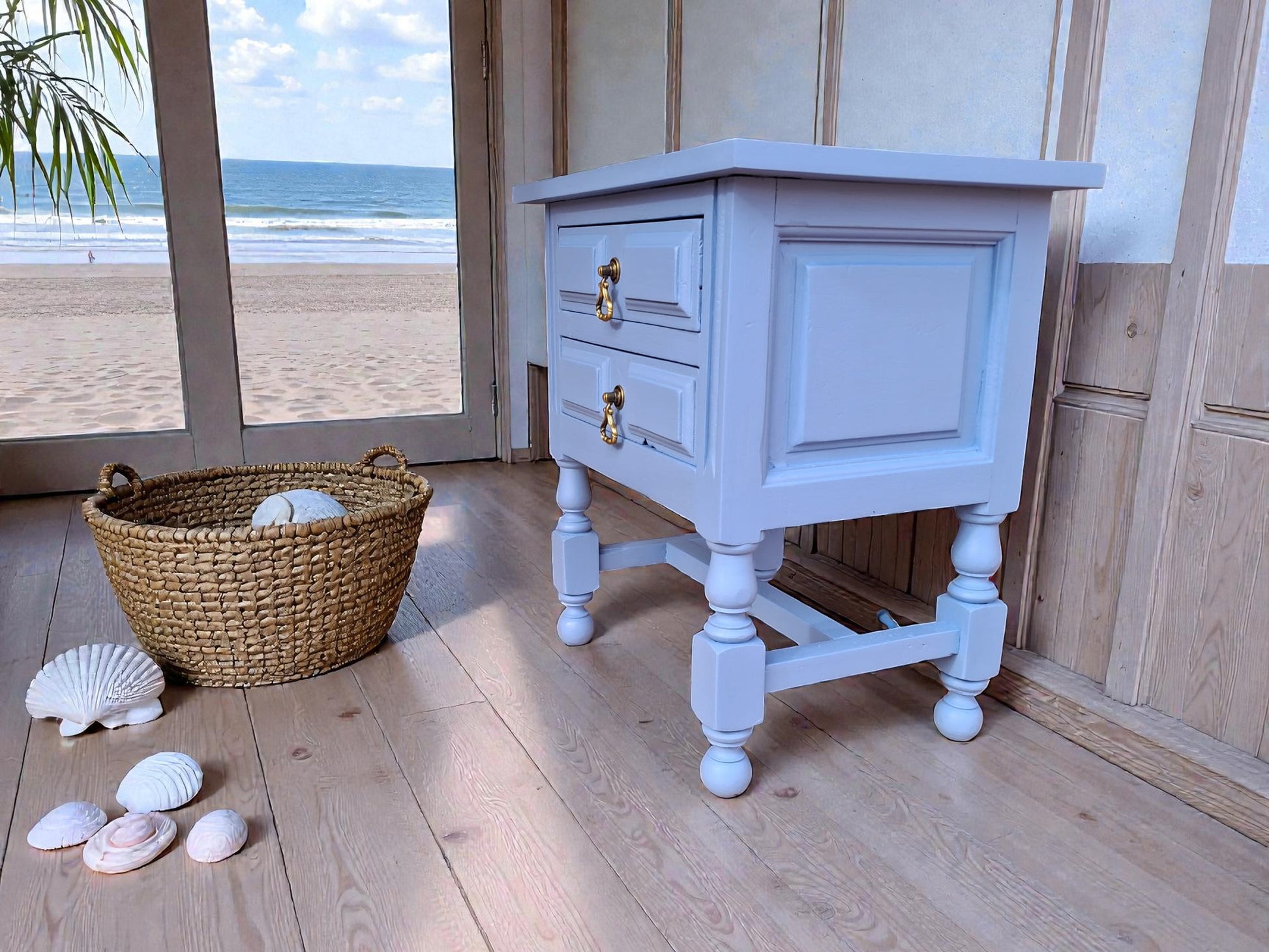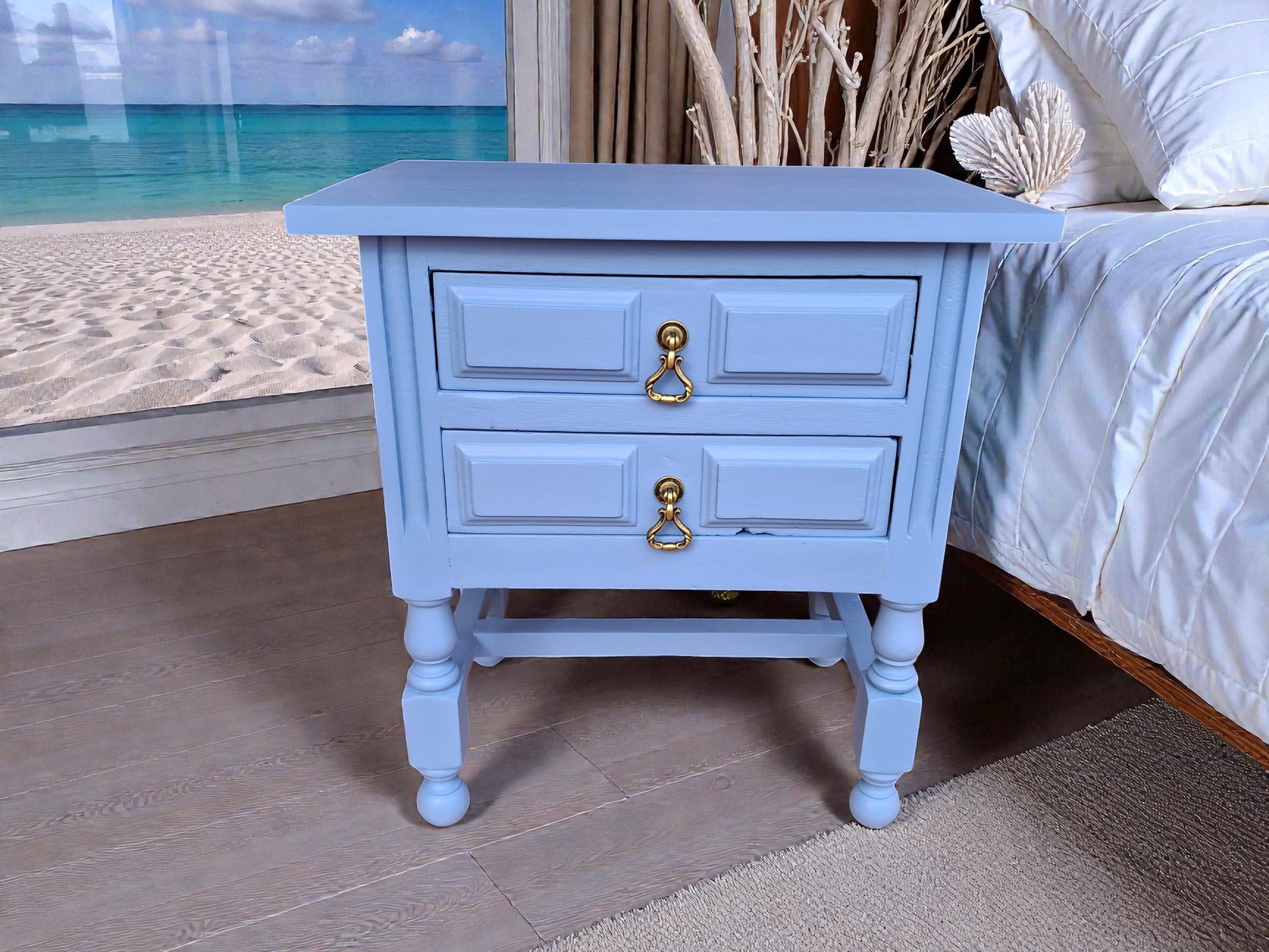 Dieser antike hölzerne Nachttisch passt perfekt in rustikale, ländliche, mediterrane, Küsten- oder Boho-Einrichtungen und kann als Nachttisch, Vintage-Beistelltisch oder restauriertes Dekorationsmöbelstück verwendet werden.