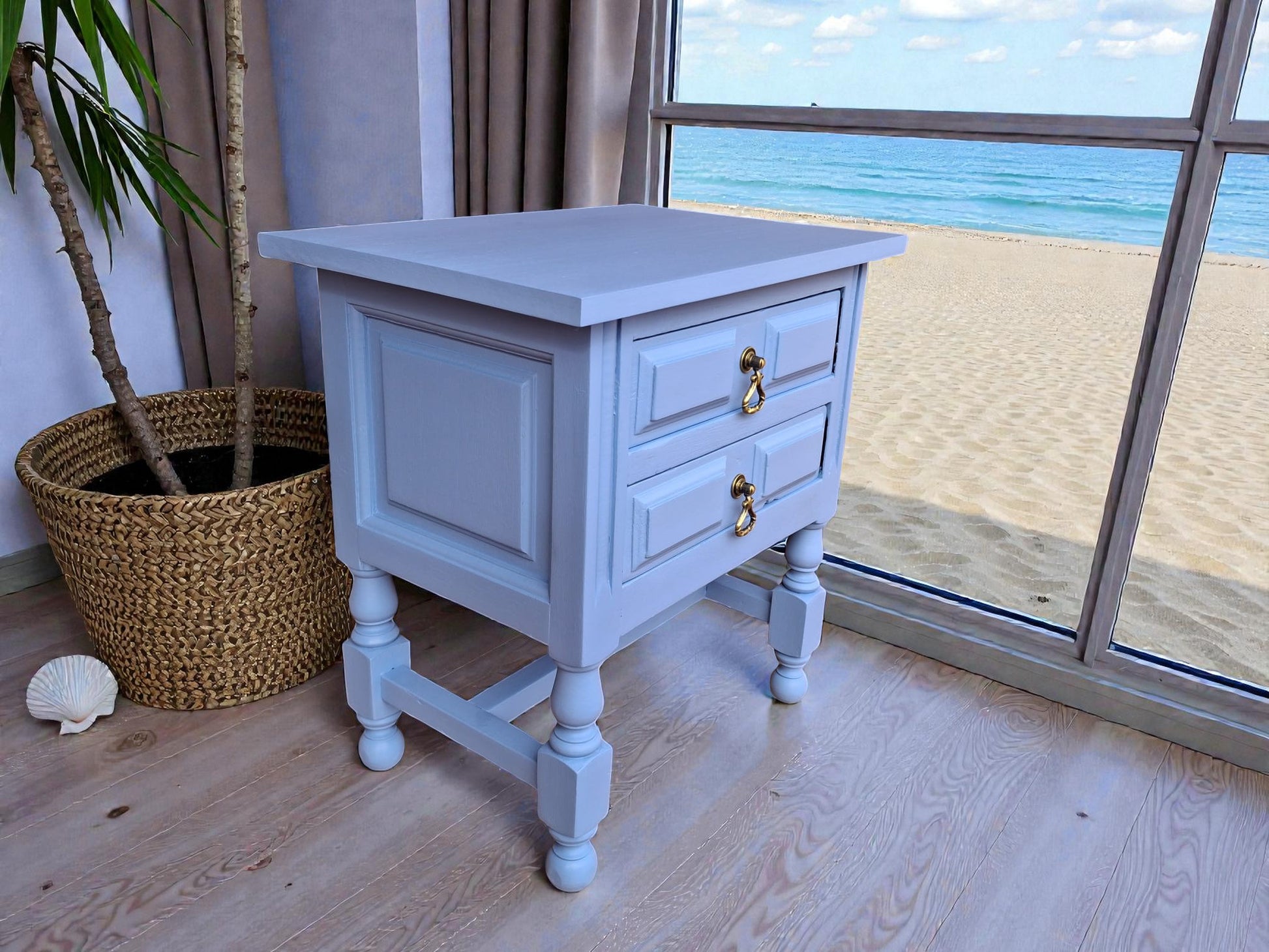 Dieser restaurierte Vintage-Nachttisch ist ein einzigartiges antikes Holzmöbelstück und eignet sich ideal als Beistelltisch für das Schlafzimmer, das Wohnzimmer oder jeden anderen Raum, der eine Balance zwischen modernem Stil und dem Charme des Authentischen sucht.